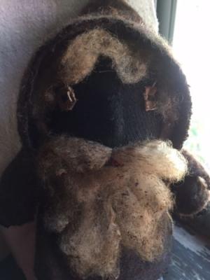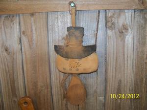 *Primitive 20x6in BLUE SNOWMAN FUR FABRIC HANDMADE Country old rusty doll*