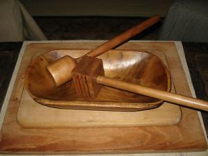 Primitive Old Vintage Antique Dough Bowl and Wood Mashers