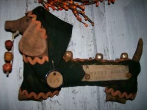 PRIMITIVE FOLK ART HALLOWEEN HC CAT SHELF SITTER ORNIE DOLL TUCK