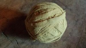 Early antique fabric ragball old textile authentic mustard colored AAFA #4