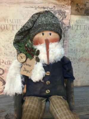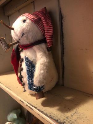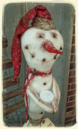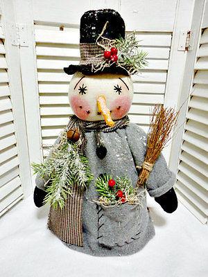Handmade Primitive Christmas Winter Snowman Doll.. All Sewn..No Gourd