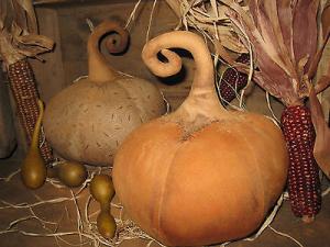 Primitive Pair of Early Fall Harvest Folk Art Grungy Pumpkins-Old & Early Look