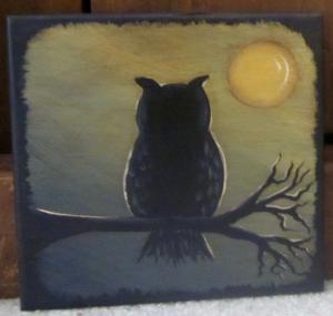 *~*PRIMITIVE*~* HP FOLK ART PRIM OWL SILHOUETTE *~* HALLOWEEN *~* BOARD