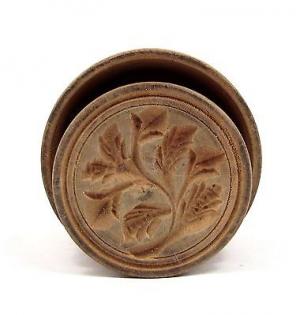 Primitive Wood Carved ~ Leaves Design ~ Stamp Print Plunger Butter Mold MINI