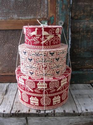 Large Stack of 3 Primitive Papier Mache Pantry Boxes Saltbox House Calico
