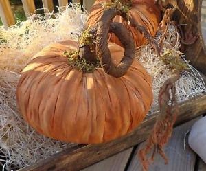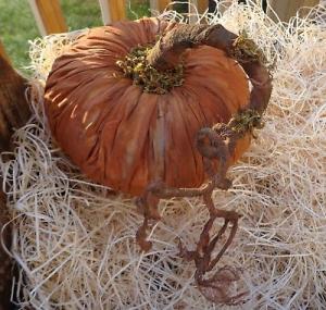 Primitive Large Garden Pumpkin*11 inches across*Old vines*Moss*Grungy*Autumn*