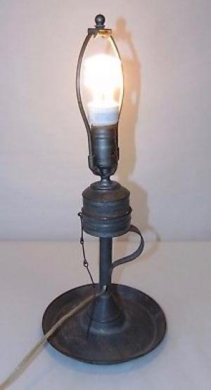 ANTIQUE PRIMITIVE TIN Whale Oil Lamp ELECTRIFIED