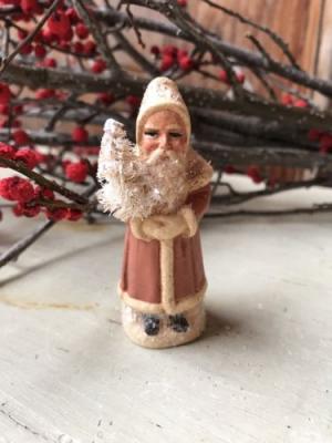 Black Forest Chalkware~ 3" Folk Art Christmas Belnickle Santa carrying tree