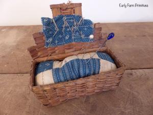 TINY EARLY ANTIQUE BASKET MAKEDO SEWING PIN KEEP "EARLY CALICO"