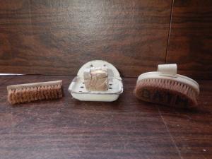 3PC VTG Primitive Bathroom,Laundry Soap Dish,Brush, Rustic Decor