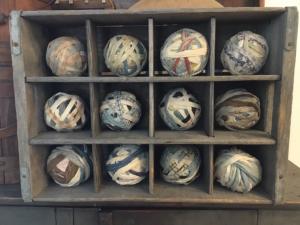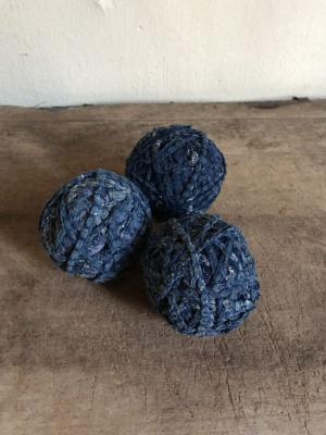BEST Set Of 3 Early Antique Handmade Indigo Blue CALICO Rag balls Ragballs AAFA