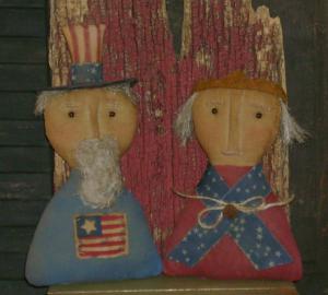 Primitive Americana Sam and Liberty Stump Doll Ornie Set ~ Ro''s Cluttered Attic