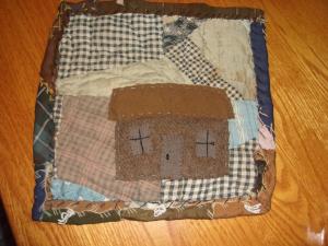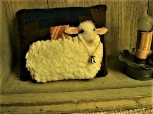 PRIMITIVE SHEEP ON OLD LOG CABIN QUILT PILLOW ~ FARMHOUSE FOLK ART
