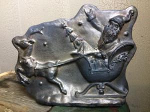 Primitive Antique Tin Style Santa Sleigh Reindeer Silver Resin Chocolate Mold
