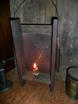 Primitive Early Look Lantern, Homestead Candle Light, Punched Tin & Wood