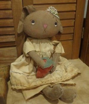 Primitive Sweet Bunny Doll*White linen Dress*Summer Thyme*Rabbit Doll*Strawberry