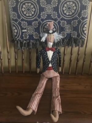 Handmade Primitive Colonial Folk Art Americana 35” Uncle Sam Doll 1776 America