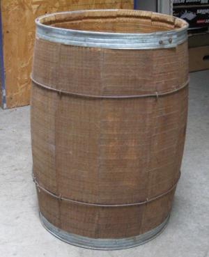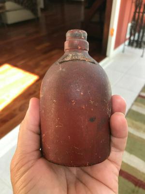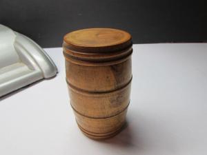 VINTAGE WOODEN PRIMITIVE BARREL SHAPE SPICE BOTTLE