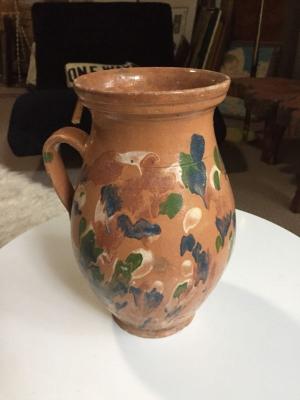 19th Century Painted Miniature Redware Handled Ceramic Bank