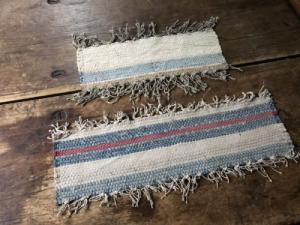 2 LONG Antique Hand Made Candle Mat Table Rugs Blue Muted Country AAFA Textile