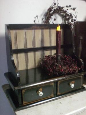 Primitive Wood Black Drawer Shelf - Wood Cook Book Shelf