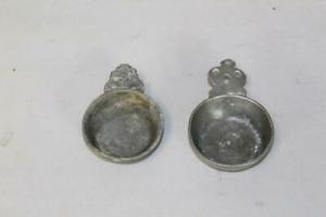 TWO (2) RARE 18TH C MINIATURE CAST PEWTER PORRINGERS OR WINE TASTER GREAT DESIGN