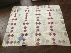 EARLY ANTIQUE PRIMITIVE CALICO CUTTER QUILT 73” x 66”