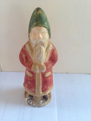 Extreme primitive Chalkware Belsnickle Santa from Chocolate Mold Green Red
