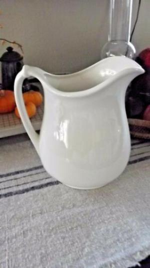 Large Vintage White Farmhouse Style Pitcher Primitive Country