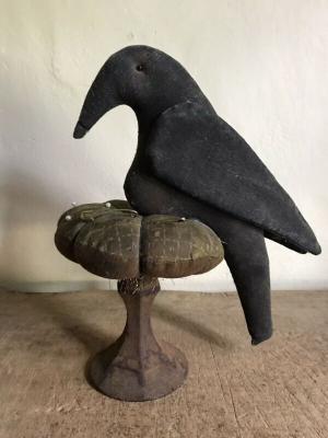 BEST BIG Tall Antique Inspired Crow Bird Pin Cushion Keep Make Do AAFA Handmade