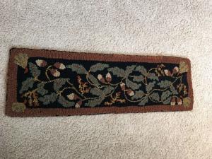 Primitive Folk Art Wool Hand Hooked Table runner Autumn Fall Leaves & Acorns