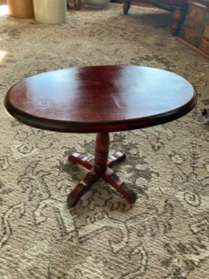 Vintage Salesman Sample Miniature Doll Mahogany Veneer Oval Candle Stand / Table
