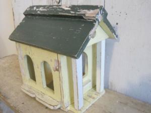 Vintage Primitive Wood Hanging Bird House Original Green Cream Yellow Paint AAFA