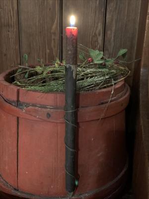 Primitive~Rope Candle & Holder Colonial Reproduction Rustic~StoneMtPrim