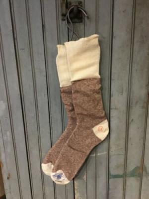 BEST Old Dark Brown & Red Long Socks Stockings Textile A+ Condition AAFA