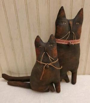 Primitive Grungy Set of Two Simple Prim Kitty Cat Dolls