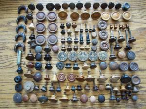 Late 19th c. Primitive Round Turned Newel or Fence Post Tops, Weathered, AAFA NR