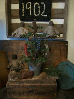 ~ Primitive Style ~ Early Simple Stockings ~ Stick Christmas Tree ~ PSAH Member