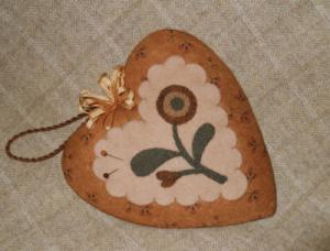 Primitive Wool Applique Hanging Heart Pin Keeper Pincushion~Wool & Cotton PRHG