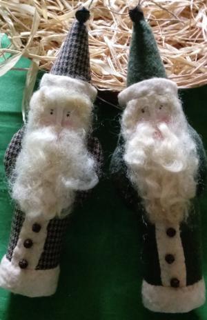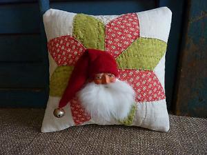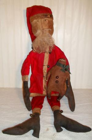 Primitive Folk Art Santa Christmas German Antique Quilt Pillow Shelf Siter JAN