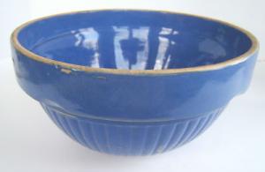 Antique Stoneware Mixing Bowl Beautiful! Large! Blue!