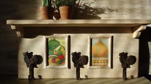 Primitive Farm Kitchen Gathering Round Wood Cutting Board & Shoo Fly Screen