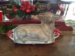 Primitive Antique Lamb Cake Mold Christmas Decoration. Centerpiece Tin