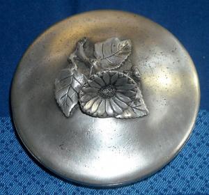 ANTIQUE VINTAGE SILVER COLOR PEWTER STAMPLED JEWERLY BOX.