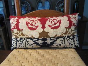Pillow made from an early antique coverlet in navy, red, mustard and cream