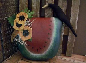 ★Primitive Watermelon Hanging w/ 3 flowers doll ★