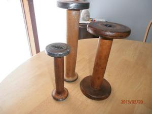 Lot of 3, 10" 8" 6" Antique Vintage Textile Mill Wood Bobbins Spools Sew Large