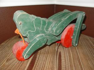 Vintage ANTIQUE American FOLK ART Painted WOOD Wooden GRASSHOPPER PULL TOY