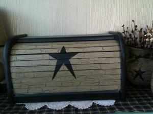 Primitive Decor Crackle Black Star Country Farmhouse Roll Top Bread Box