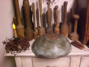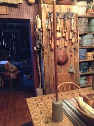 Early large wood pounder kraut masher old paint 3 ft. primitive